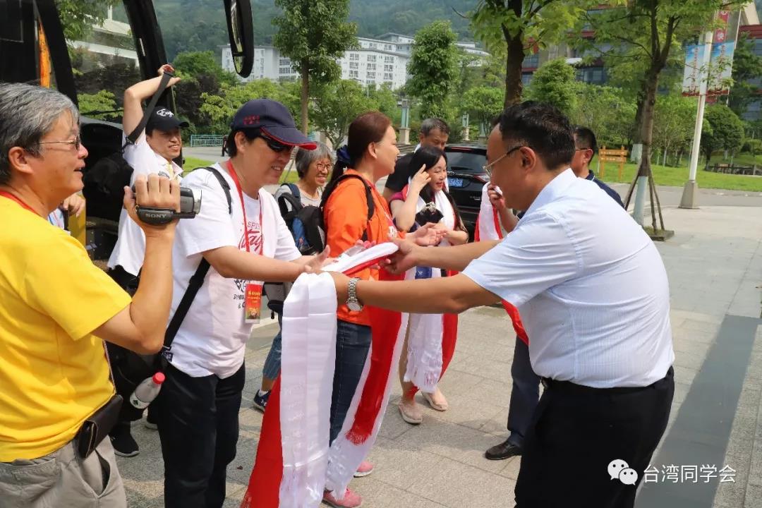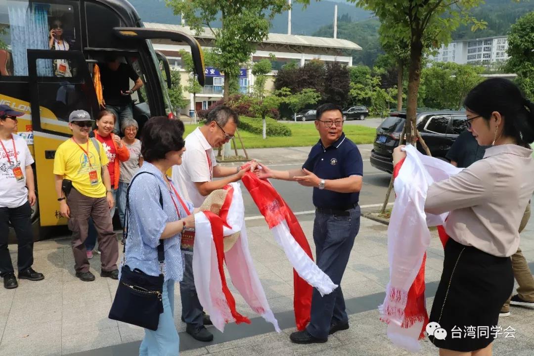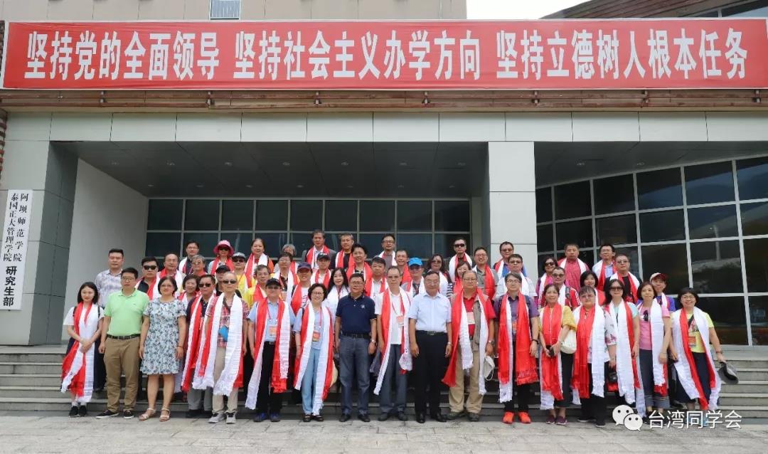 离开羌寨后,参访团前往水磨镇,来到阿坝师范学院参访交流。阿坝师范学院党委副书记、工会主席孙建平,阿坝师范学院藏汉双语学院院长严木初早早等候在下车地点,为每一位到访的客人献上藏族的哈达和羌族的羌红。