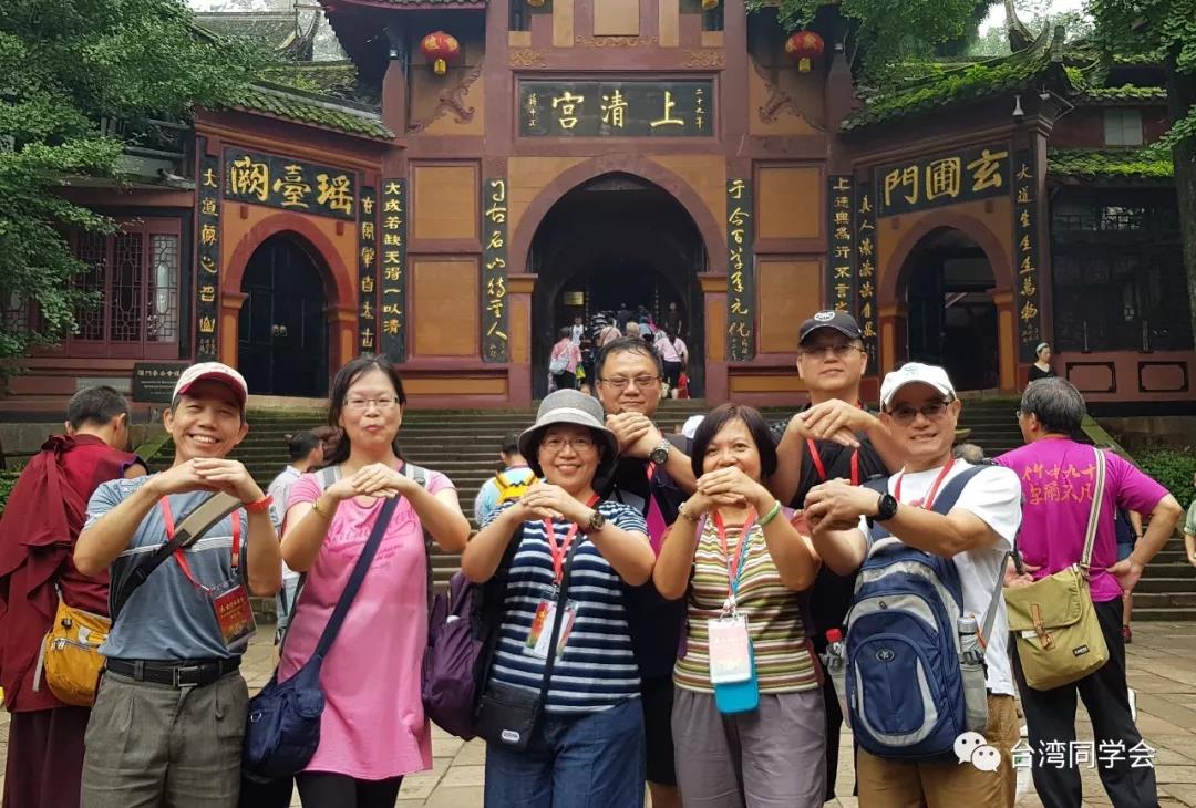 老师们乘坐画舫穿渡月城湖,搭乘高空索道缆车,然后再徒步攀登,终于来到上清宫。