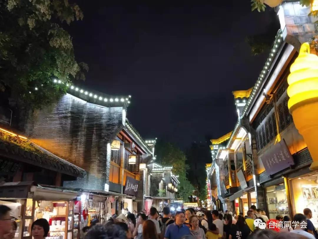 返回成都前,参访团趁着暮色考察了充满民族风情的水磨古镇。拾阶而上春风阁,微风细雨中漫步禅寿老街。大家在飞鸿广场合影留念。
